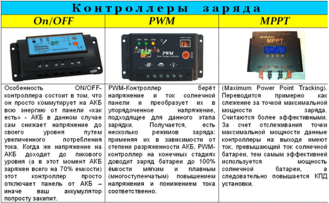 Les contrôleurs PWM prennent en charge la tension correcte pour charger la batterie, ce qui "coupe" simplement l'excédent. Un tel dispositif est grippé quelle que soit la tension fournie par la batterie solaire. La condition principale est même supérieure au taux d'imposition nécessaire.Pour 12 V de la batterie, la tension est chargée à 14,5 V et à un état raréfié d'environ 11. Le contrôleur de type Tozi est simple à partir de MPPT, mais a un rendement inférieur. Ceux-ci vous permettent de charger la batterie jusqu'à 100% de sa capacité, vous donnant un avantage significatif par rapport au système "On-Off".