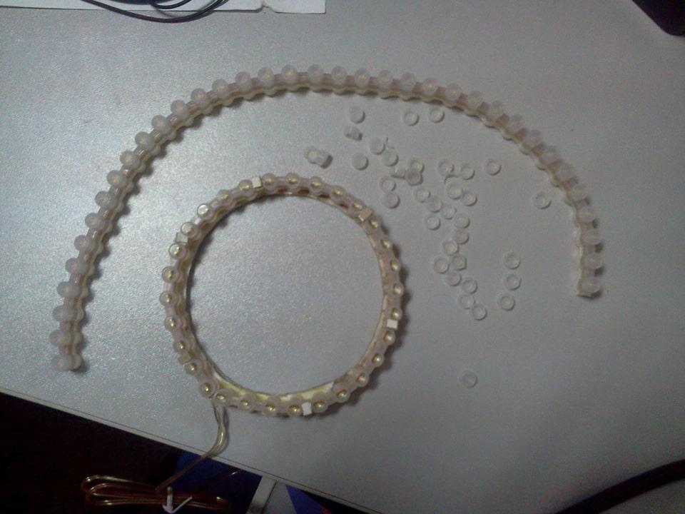 Pour oui, dirigez vos yeux angéliques, et secouez 2 rubans à parquet, chacun d'une longueur de 220 mm. Couper le ruban LED (SL) éclat de la page, qui est généralement, mais est possible sur un endroit strictement défini, blanchissant le haut de la bande de samata. Si vous n'entrez pas dans la longueur la plus courte (et très probablement), coupez les objectifs les plus proches - fermez l'autre avec une couverture.