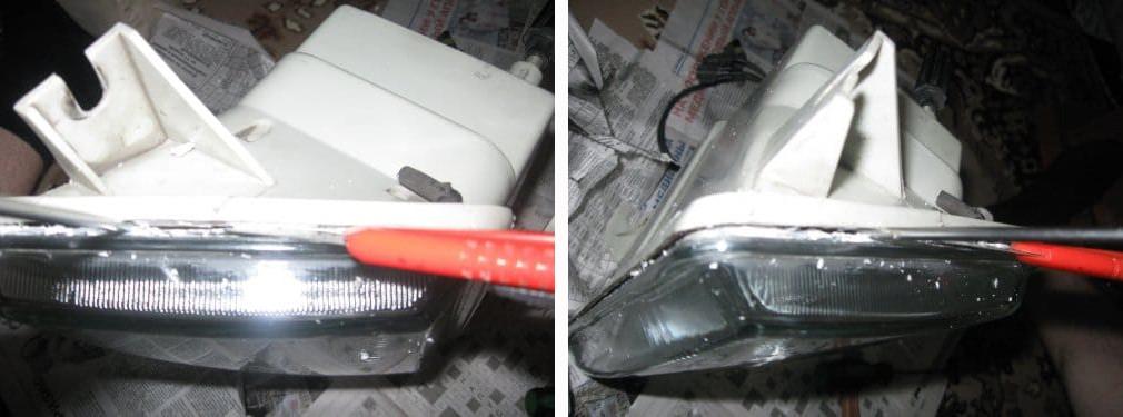 Sortez et posez le verre sur la viande. Pour oui, envoyez un camarade, nettoyez l'ancien scellant et appliquez-en de nouveaux.Mettez un nouveau verre et appuyez dessus sensiblement, jusqu'à ce que les joints soient complètement secs. Laissez et installez le phare au sol et vous pourrez le sauver et faire les yeux angéliques du mrezha bordeaux.