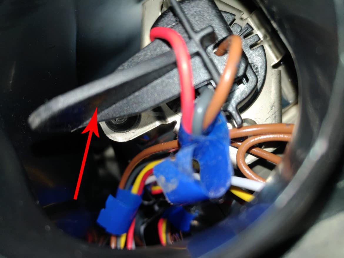 Vzimame venchelistcheto et mahame kapaka. Devant nous se trouve un jarzhach pour une lampe DRL + mesurez-le avec une bannière spécialement en plastique, une partie est blanchie avec une flèche.