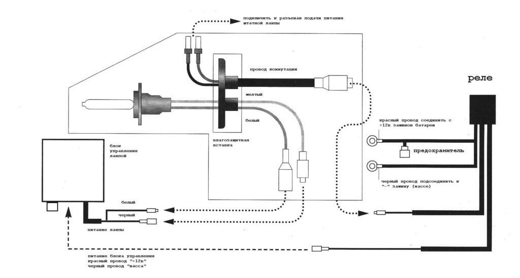 - Installez la lampe au xénon dans le connecteur. Câble se vkarvat prez schepsela.