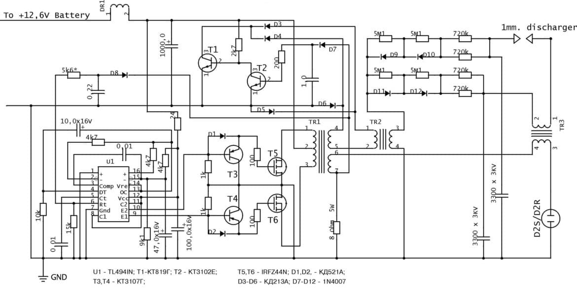 D'une manière ou d'une autre, vous pouvez voir sur le schéma du klaxon qu'un dispositif d'allumage au xénon n'est pas un dispositif électronique difficile, dont certains proviennent de :
