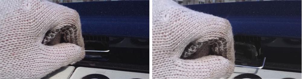 Et maintenant pour la modification, qui provient du crash cover W5W (voir la section "Types d'utilisation du crash cover"). La lumière sur le numéro d'immatriculation n'est pas montée en haut de la vis autotaraudeuse, mais en haut de la coupe à ressort, située à l'écart, quelque chose près du centre de la voiture. Vous pouvez même utiliser un tournevis à tête plate, mais il est plus pratique d'utiliser une petite clé Torx.