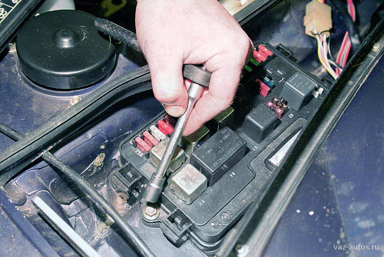 Retiré de la capacité et exclu du connecteur (sur la photo, le bloc VAZ 2109 est monté avec une installation similaire)