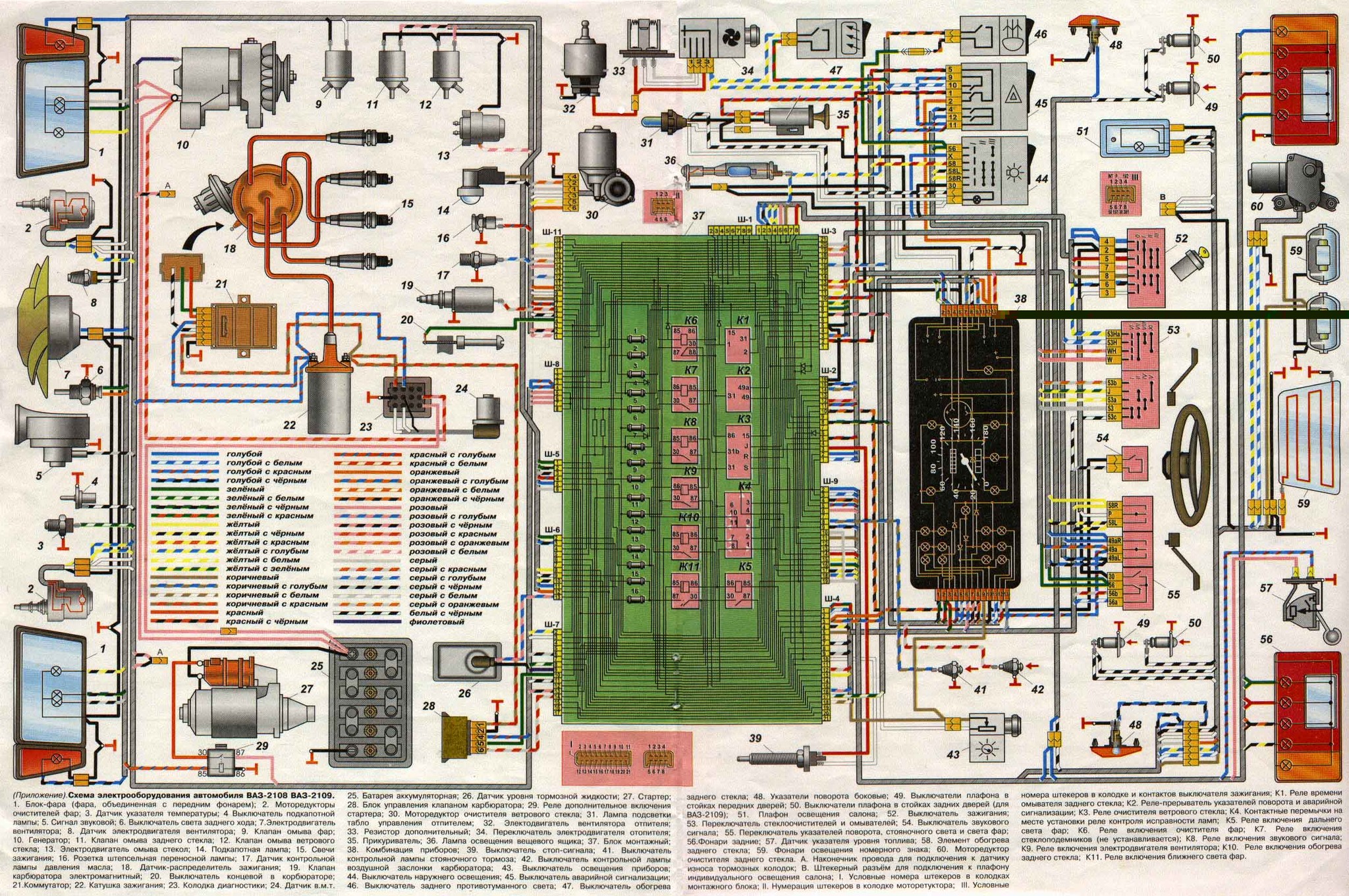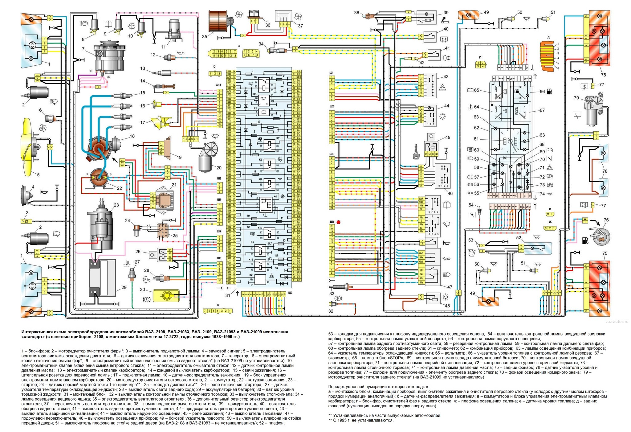 Schéma de câblage sur l'équipement électrique VAZ 2109, 21093, 21099 (1988 - 1999)