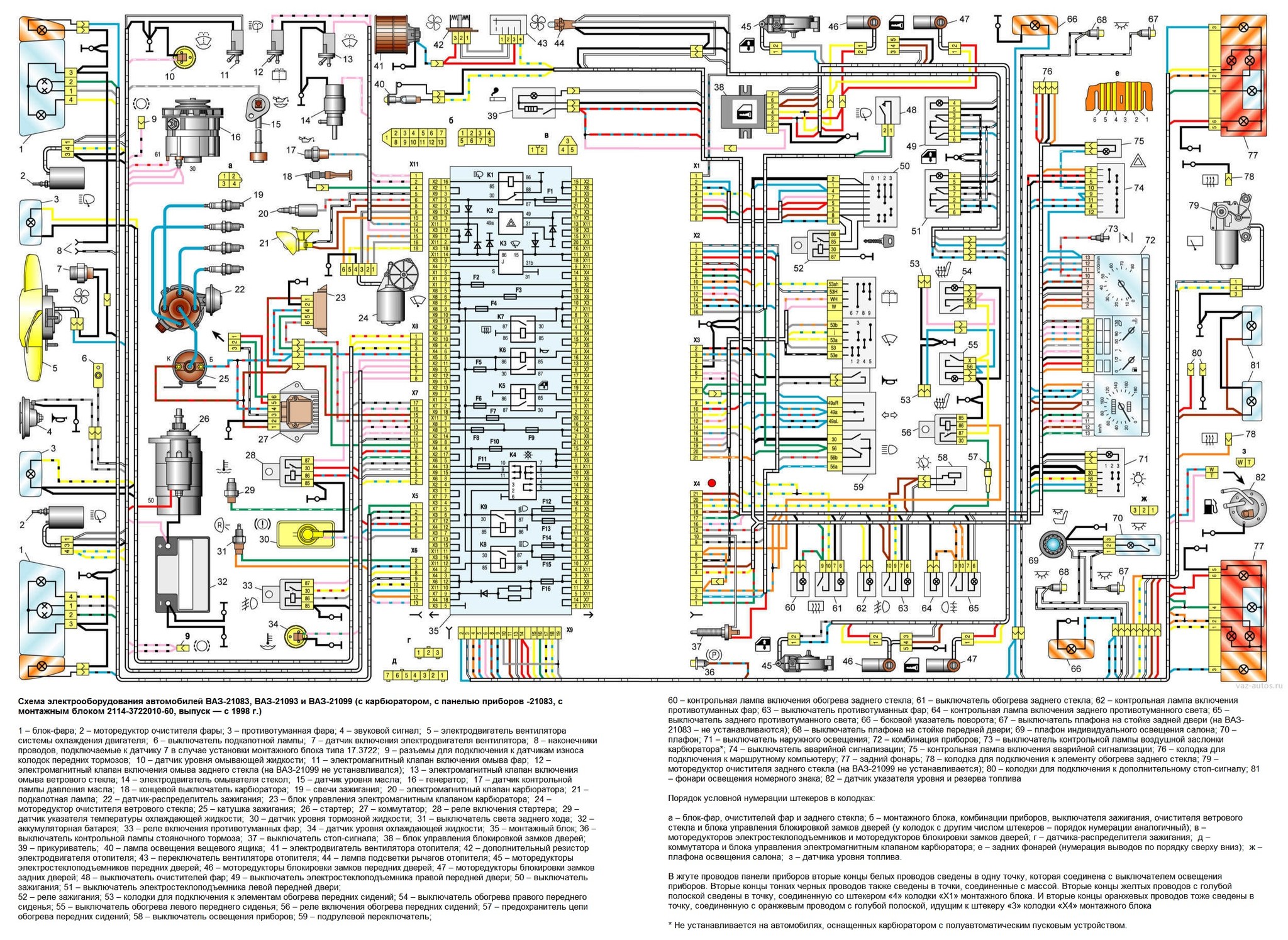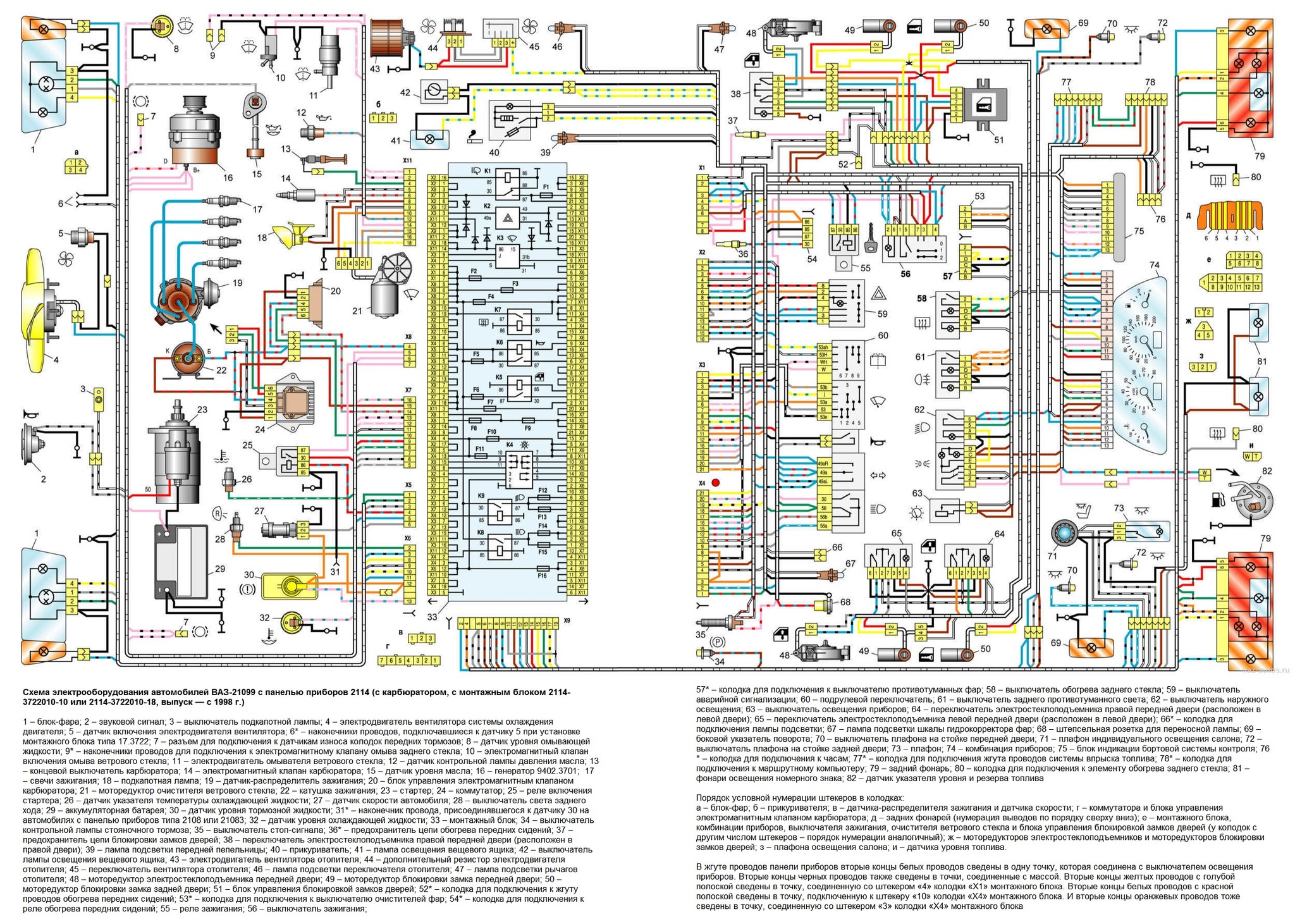 Schéma de câblage sur l'équipement électrique VAZ 21093, 21099 avec bloc de montage 2114-3722010-60 (à partir de 1998)