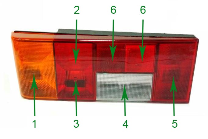 Maintenant derrière les feux arrière. Structurellement, une marchandise est une unité unique, ne contenant pas de miettes. L'emplacement et le but de la lampe sont en quelque sorte les suivants: