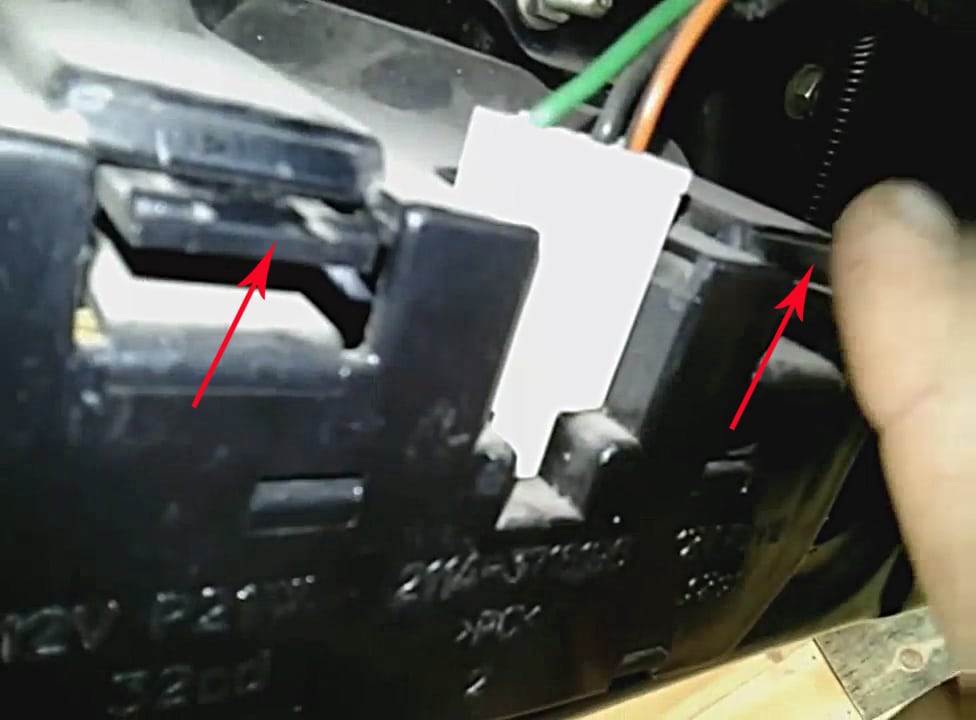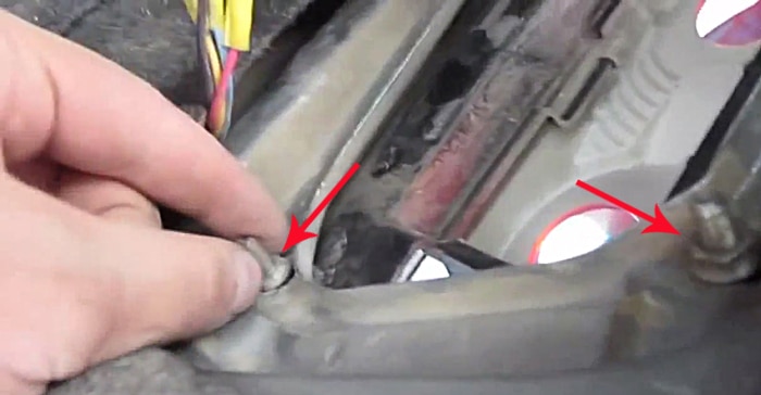 Décoction de capaca sur le tronc, namiramé job en tapiceriyata, quelques zadnata zadnata souvent sur lampata, décoction de go. Izvedame protège le bloc, châle Izvedam avec lampite. Tous les détails du mortier sont décrits en détail dans la section "Comment changer la lampe". Repliez le tapiceriat le long du filetage sur le fener, marquez 4 écrous, positionnés le long du périmètre. Dans l'image, il y a deux flèches de marques tyah sa le long du bas.