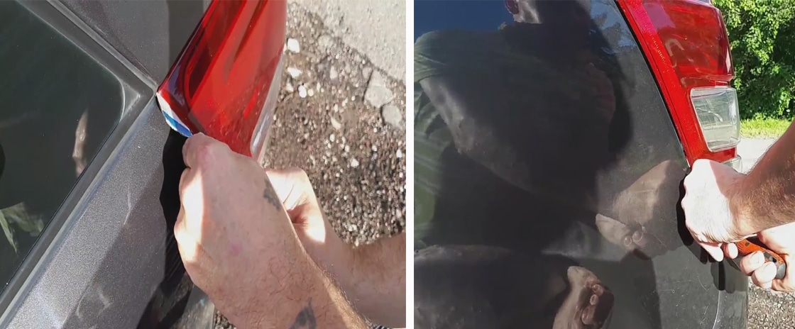 Mettez du carton entre le boîtier et le phare. Il faut e, car oui pas se overdraska tyaloto. Zapochvayki otgore, utilisez un tournevis, pour oui, envoyez un peu au-delà du sol, puis poussez progressivement le fenerceto vers l'arrière et relâchez le pincement. Nous travaillons avec beaucoup de soin et sans fanatisme, afin de ne pas endommager le verre avec un tournevis.