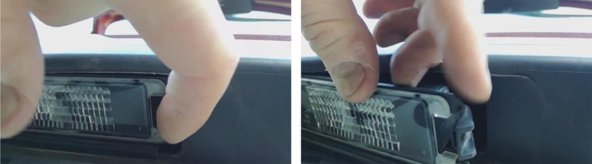 Et donc, nous allons gagner du temps et changer l'embrayage au numéro d'immatriculation sur la Renault Logan. Avec un tournevis plat, pressez-en un sur l'interrupteur (aboutez le lampat) et en peu de temps, arrachez la nervure tosi de l'illuminateur. En conséquence, les projecteurs tov peuvent être forestiers et les retirer, par exemple, vérifier la protection des câbles.