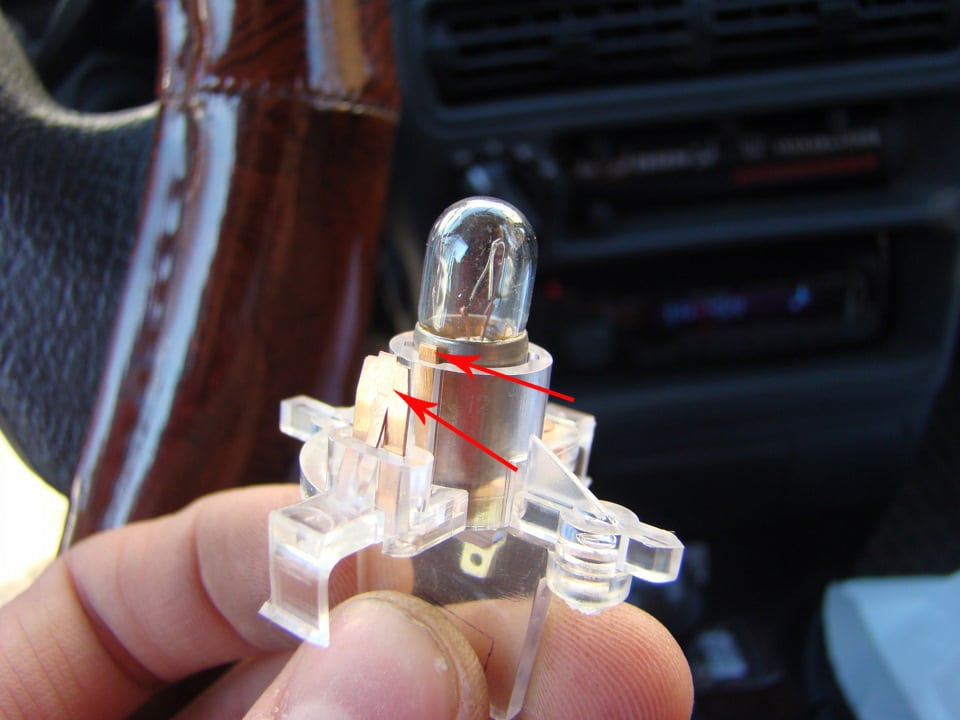 Préinterrupteur défectueux. De la fenêtre droite (voir la rubrique "Comment déposer le capac et changer le lampat"), de la cassette droite du grade de l'interrupteur, vérifier le contact sur l'interrupteur (sur la photo le long du marquage avec le flèches), nettoyez-le si nécessaire.
