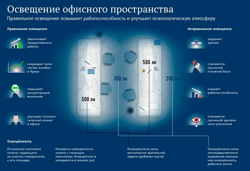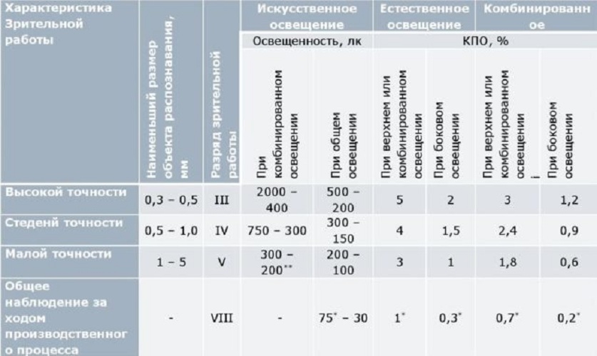 C'est difficile à voir, mais perdez-vous. En cas d'écart par rapport à la norme, il est sûr de réagir, mais pas avec des maux de tête, puis avec un cri dans les yeux. La quantité maximale de travail par personne a été atteinte, mais aucun montant pour l'éclairage des lieux de travail correspondant à la norme d'éclairage pour des conditions de travail spécifiques. Études sanitaires et d'hygiène pour l'éclairage pour l'industrie des locaux, caractérisez pour quel éclairage de travail est prévu, choisissez parmi les spécialistes et vérifiez à l'avance. La gentillesse de Zatova, quelque chose que vous pouvez diriger, mais ne le faites pas correctement, mais dépêchez-vous des saints ou ouvrez votre vélo, mais utilisez-le pour préparer des arguments pour les SanPiN et les SNiP.