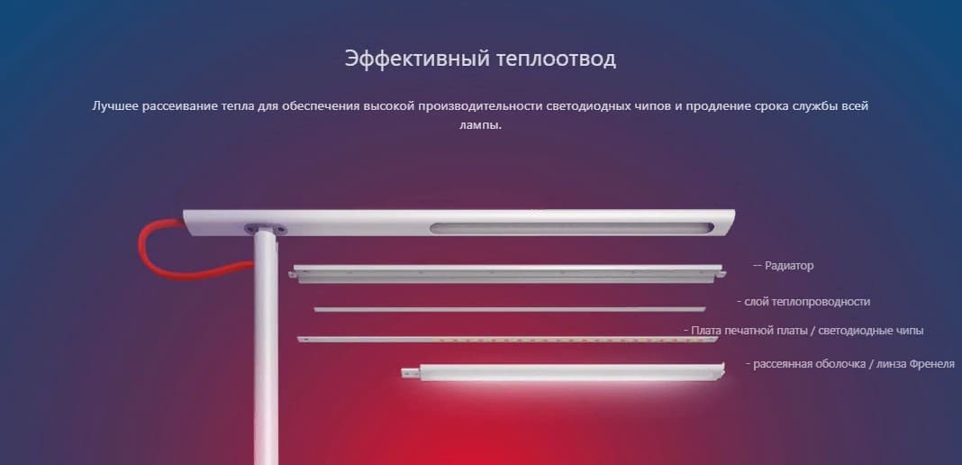 Pour les thèses, qui travaillent constamment sur un ordinateur, la lampe USB Xiaomi Mi LED 2 est également utile.C'est une source d'éclairage pratique, qui est protégée de l'USB. Negoviyat gavkav corps et vous permet d'ajuster la position et le gola sur la lampata.