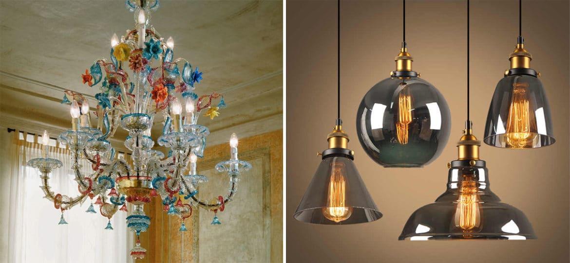 Essayez des illuminateurs recouverts de verre dans des pièces de styles différents