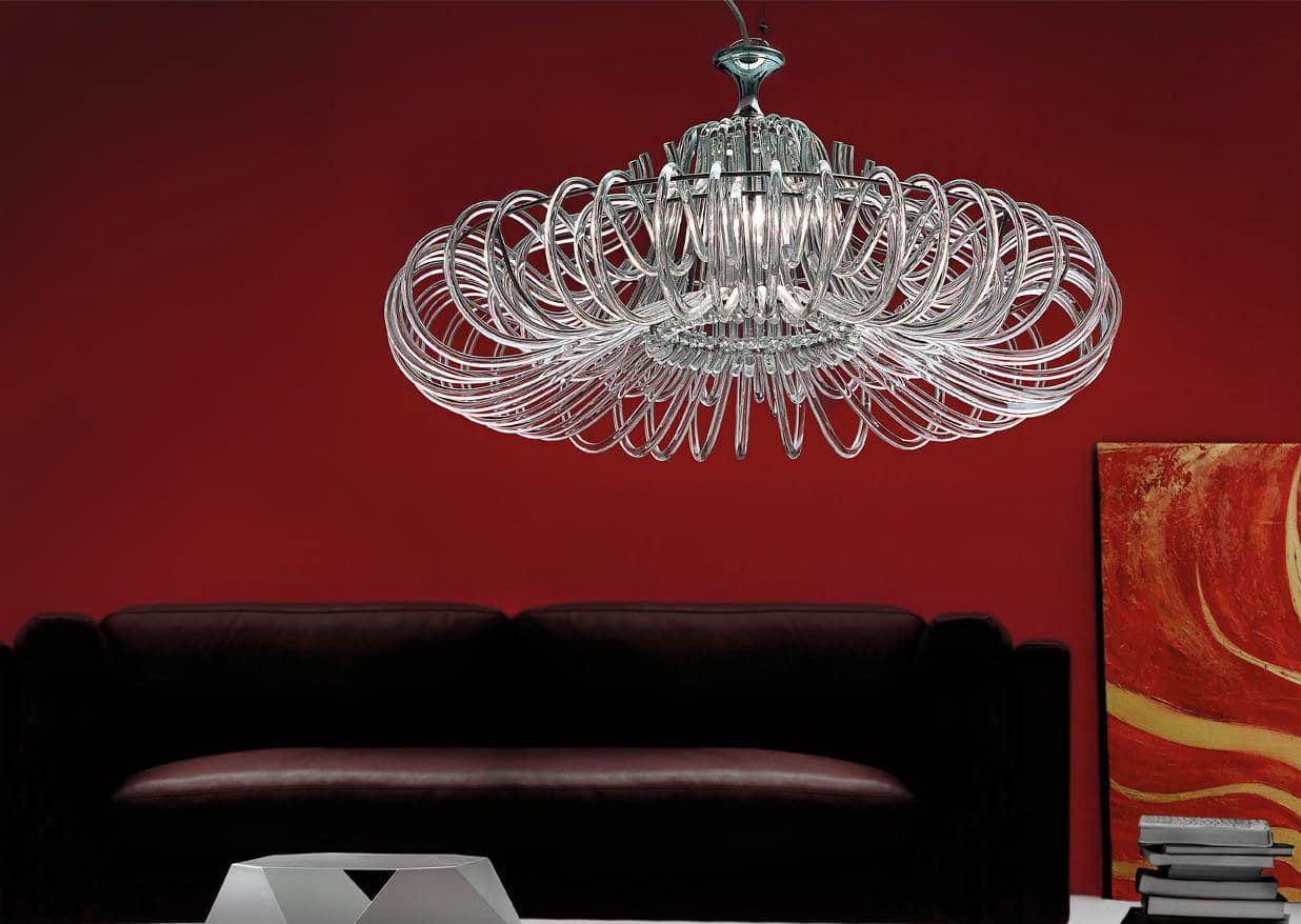 Vous pouvez utiliser les déversements de verre de Murano dans presque tous les troupeaux. Décorez lourdement la salle à manger, la banyata, le hall, la cuisine et la chambre. Pour oui, choisissez un éclairage diffus ou clair, méco ou pompeux, assez de nourriture et choisissez une lampe avec une couleur et une transparence adaptées sur le verre.