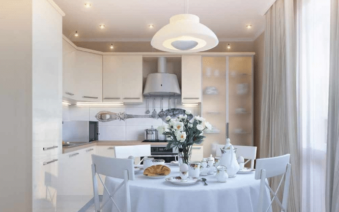 - Ako versera la source principale sur la lumière dans la cuisine, togava qui tryabva et sera placée au centre sur le troupeau. Tova e est particulièrement vrai pour la cuisine Malkite. Ako flock e golyama, togava si struva et mettre un tel éclair de brocart sur le réfectoire.