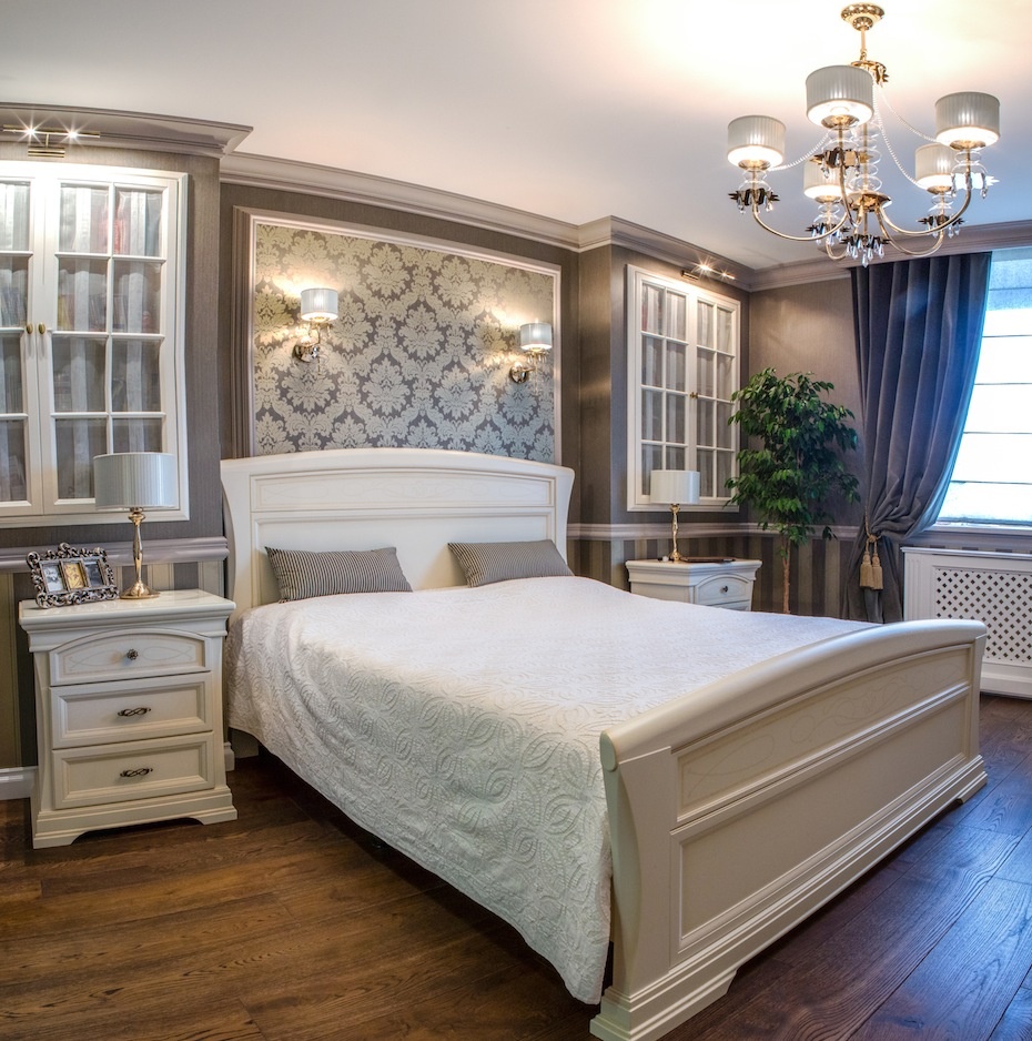 Les polyleys classiques ne peuvent qu'être loués avec une variété de couleurs et de palettes, typiques des golamata souvent issus de produits d'autres styles.Izpolzvat se predimno ton calme, kato se préfère blanc, gris, argenté, doré, kafyavo, crémeux, noir. La floraison de Cherniyat sur l'abat-jour est typique des produits appartenant au style classique moderne.