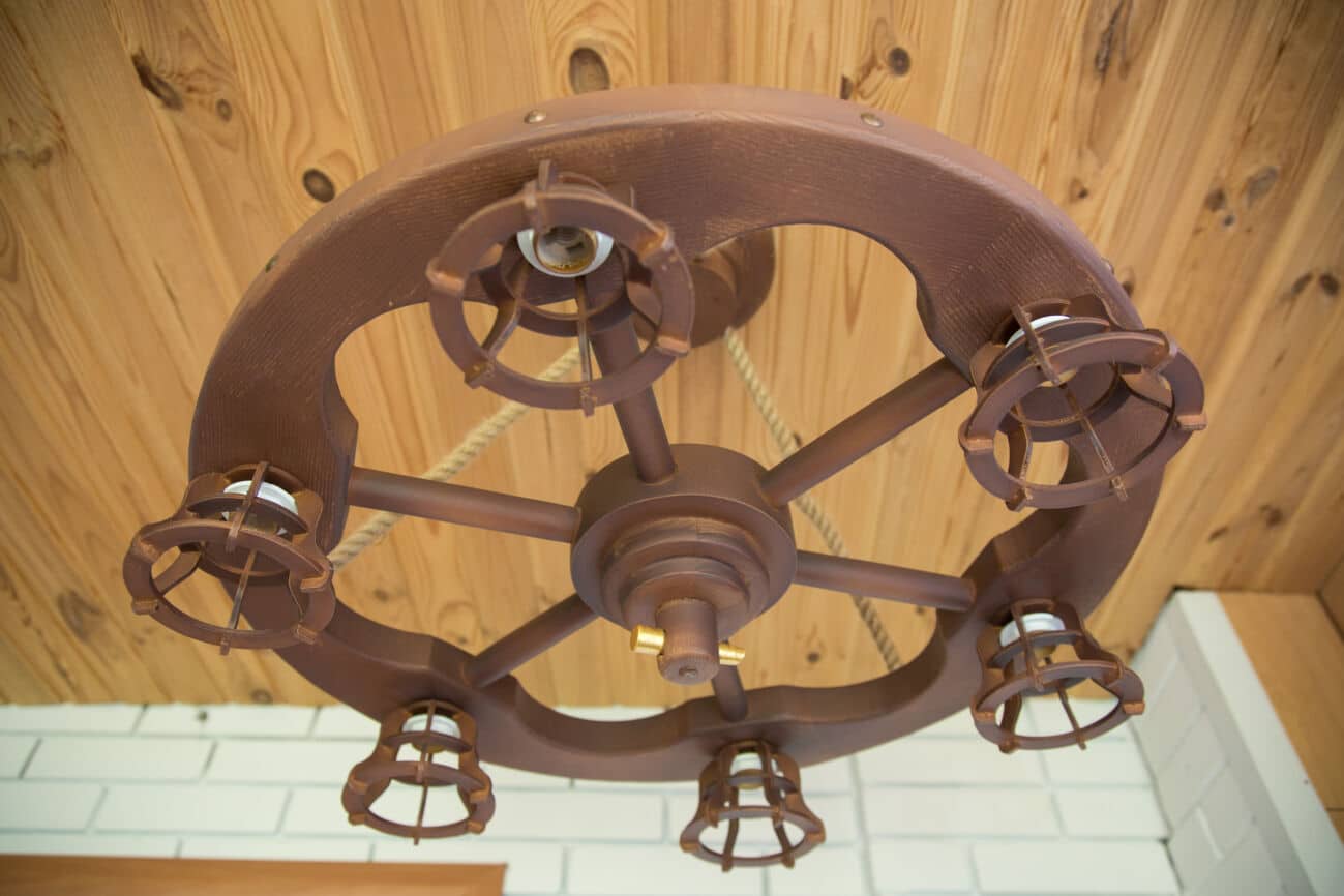 Celui-ci est impressionnant avec sa propre simplicité solennelle, ses chaînes massives et son dzhanta, au sommet de certains chandeliers sa sertissant 8. Pour la production de tyahnoto, on utilise du forgé.Ces designs sont tous produits par la société DLAN, et certains d'entre eux peuvent également envoyer une lampe d'exception à vos luminaires.