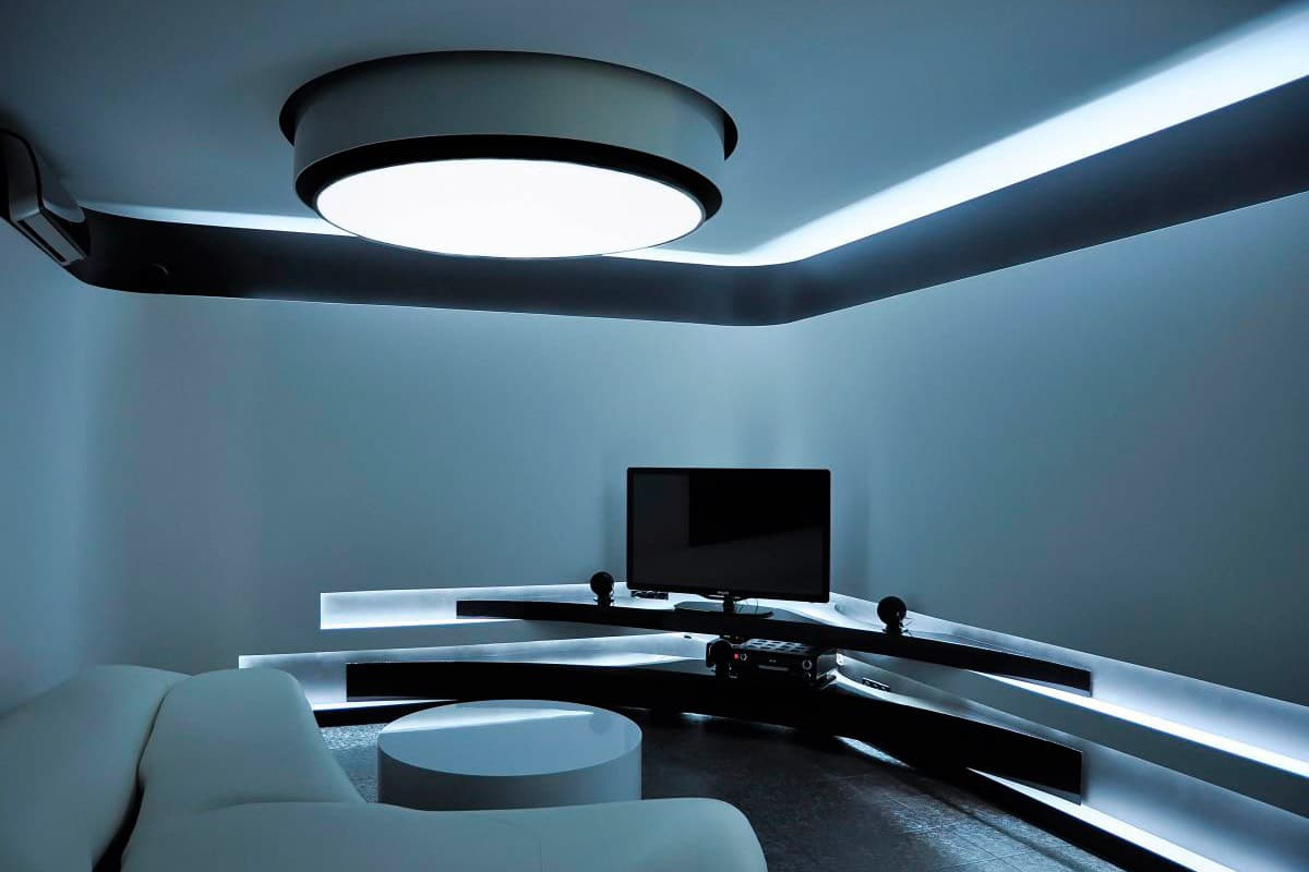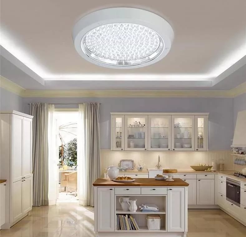 Tout d'abord, il y a un modèle original, quelque chose comme une couleur. Plus bon pour tezi, qui décore un troupeau dans un style high-tech ou minimaliste. Avec l'aide d'une télécommande, vous pouvez le changer d'un blanc à un jaune. Douze ensembles de nuances répartissent la lumière uniformément, les lumières affluent.