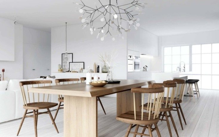 Le polyleyte de style scandinave peut être une tavane ou une structure suspendue, dont la plupart est constituée d'une pièce ou d'une pièce métallique. Les lampes Edison authentiques et les dispositifs à diodes modernes peuvent agir comme source de lumière, la condition principale étant beaucoup de lumière.