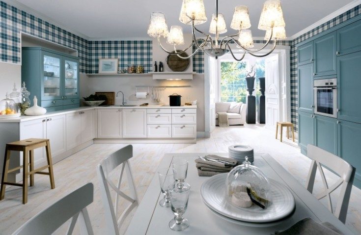 Derrière la cuisine, l'éclairage est idéal avec un design simple.Il est souhaitable que même du lakirano darvo ou du métal, et en cas de bon usage du verre sennitsa.
