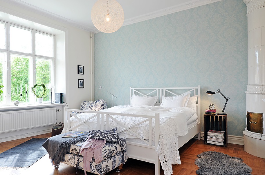 Dans l'intérieur scandinave, ils préfèrent les couleurs claires: bleu pâle, blanc, vert clair, crème, beige, café clair, terre cuite pâle. La présence de ceci sur des nuances claires vous permet de faire connaître aux gens la plénitude des troupeaux du ciel ensoleillé, ce qui est nettement inaccessible au nord.
