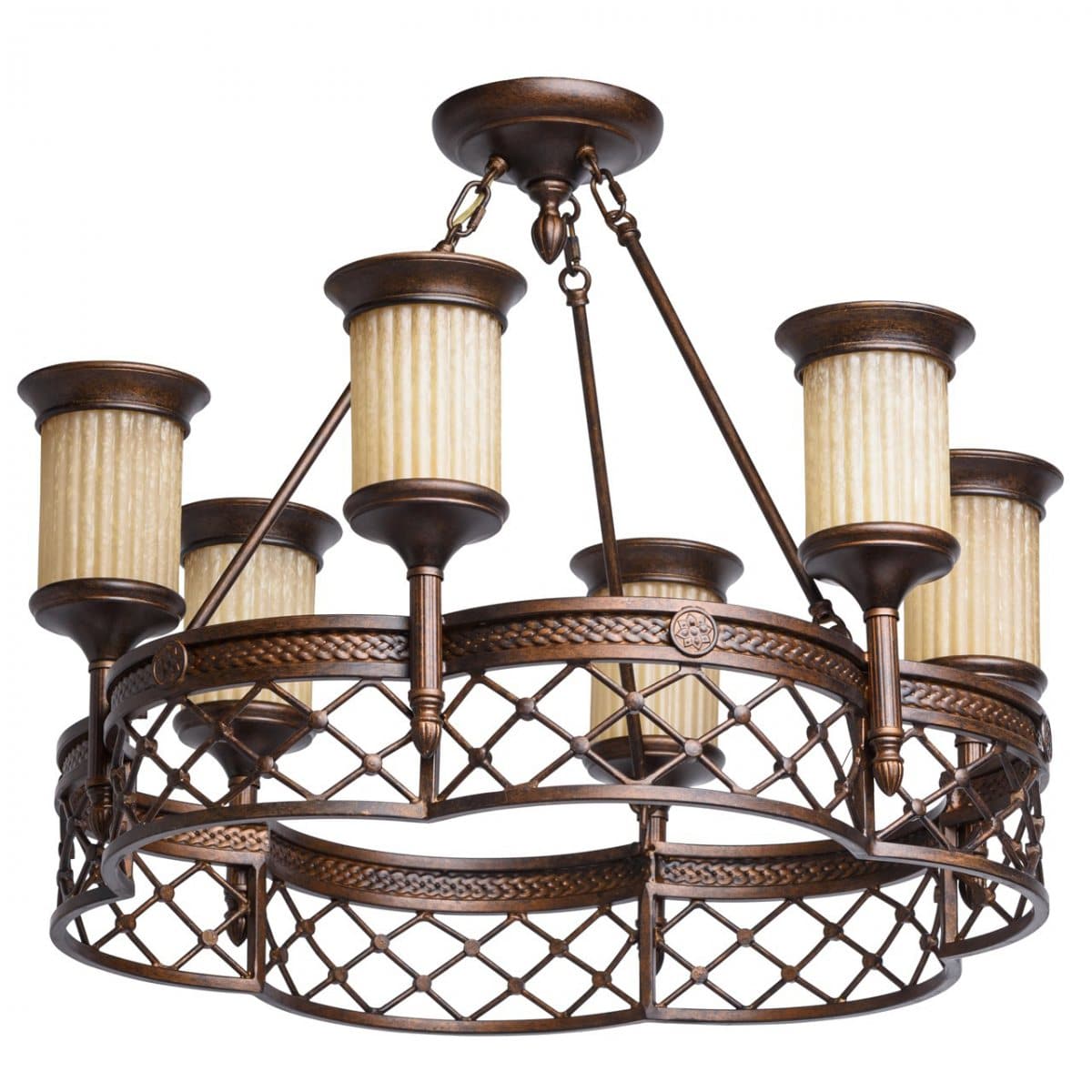 Nai-chesto se ispolzvat matériau naturel. Pour la production des cadres, ils factureront du darvo, du métal, de la céramique, qui sont utilisés individuellement ou créeront différentes compositions. Plafonite et abat-jour en matières naturelles (chiffon, koprina, lin), cristal, verre, céramique.