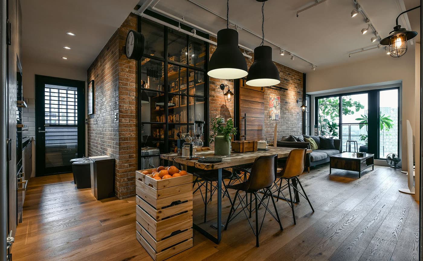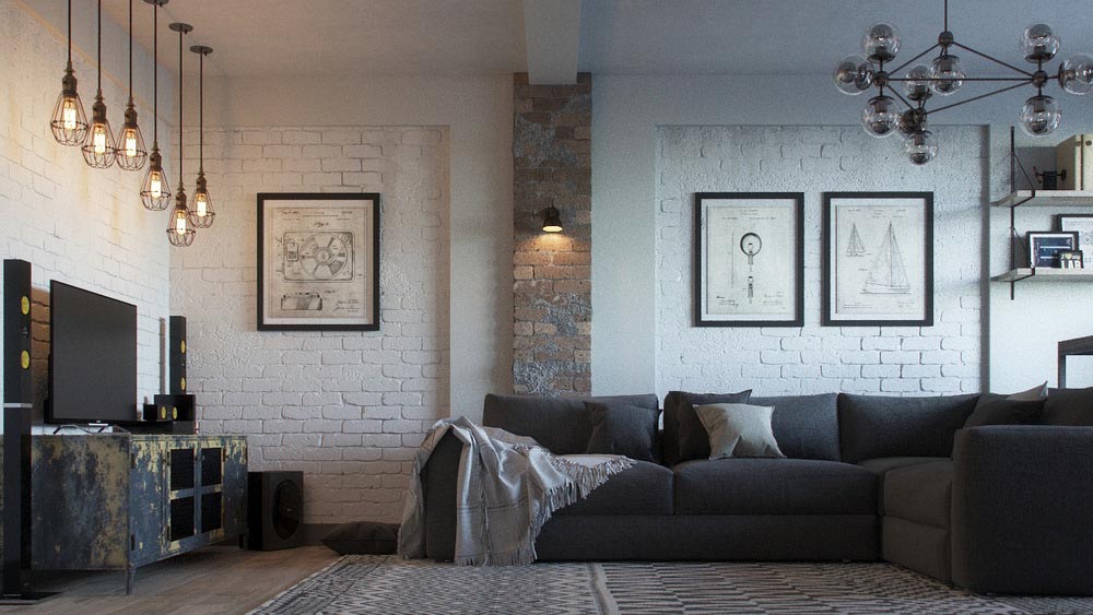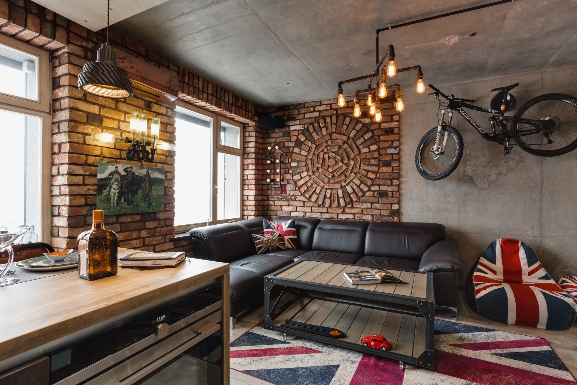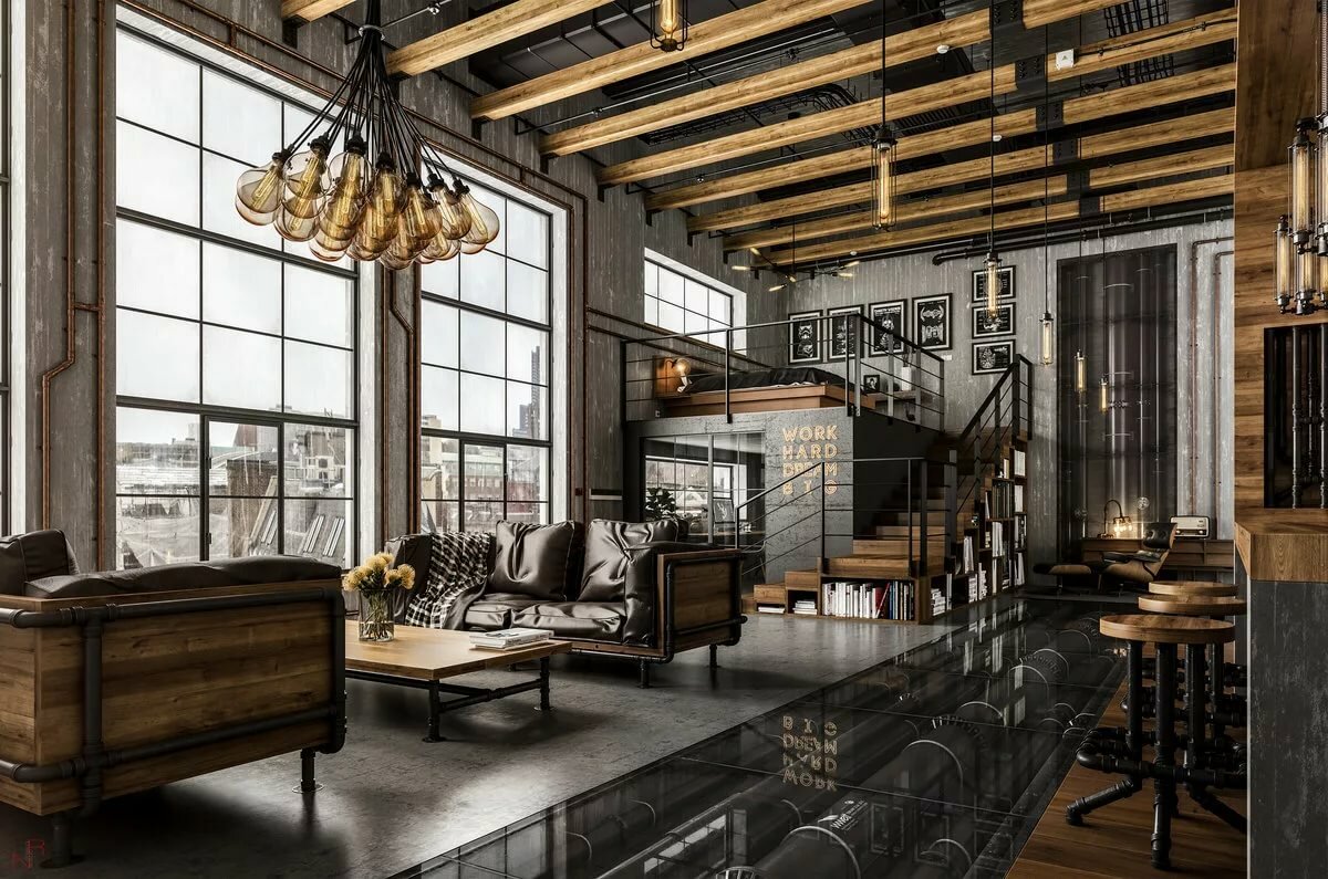 Intérieur dans un style loft avec éclairage primaire et secondaire retour kjm sdzharzhanieto ↑