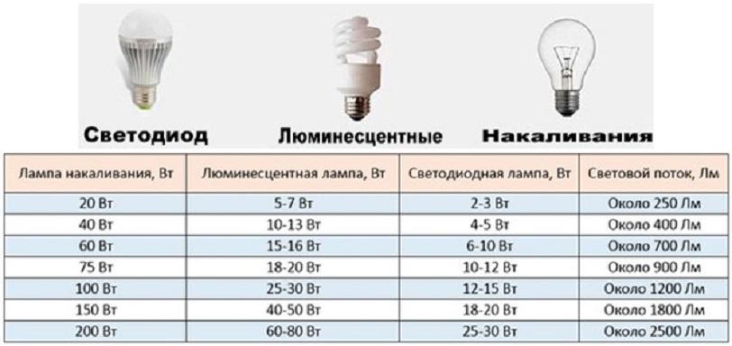 Le rapport entre celui-ci et le flux lumineux et la puissance électrique sur différents types de lampes est illustré dans la figure suivante :