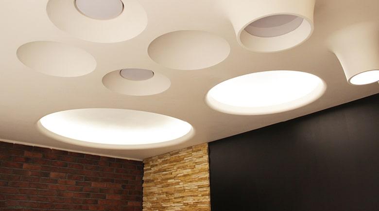 Tout type de lampe et d'installation en gypse et éclairant le corps, puis choisissez tous les droits, en fonction de la destination de la pièce, de la taille de la base, de l'abat-jour. Options possibles :