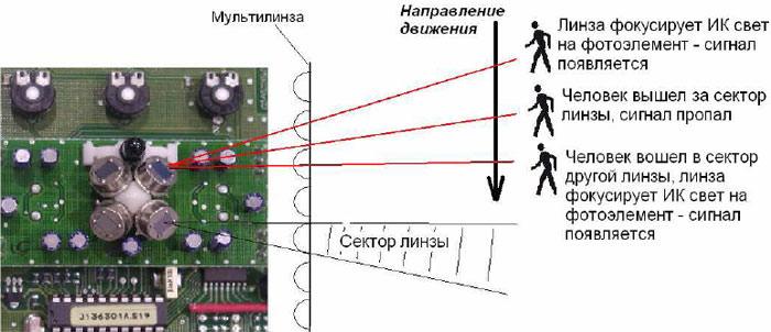 L'appareil, qui fonctionne sur le principe du tosi, balaye constamment l'espace au-delà du rayonnement infrarouge (carburant). La police Dokato IR est indispensable, le capteur n'y réagit pas. Tout d'abord, il n'y a pas de changement de rayonnement pour le plaisir (voir l'objet en mouvement), un schéma spécial pour le comparer donne un signal - le mouvement est si blanc. Techniquement, ces problèmes sont résolus grâce à l'utilisation de quelques pyroéléments, tous équipés d'un système complexe de la brème de Fresnel et d'un schéma de comparaison. Les appareils, fonctionnant sur le même principe, peuvent être passifs et actifs. Tout d'abord, ils capteront le très toplinnoto izlychvane, et de deux manières, feront écho à l'image de leur propre illuminateur infrarouge (LED IR) et analyseront la lumière infrarouge réfléchie par l'équipement.