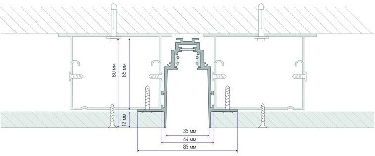 Pour le tavani des cloisons sèches, deux schémas d'installation sont utilisés. Ako sur le bus magnétique est une petite lumière de corps léger, cela utilise l'option pour une installation monocouche.
