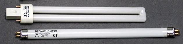 Les lampes utilisent souvent des lampes fluorescentes en ligne et en forme de U de petite taille et de petite puissance. Aller avec la base T5 ou T4, suivre, selon la conception, avec l'équipement avec G23, 2G7, 2G11, 2G10, etc.