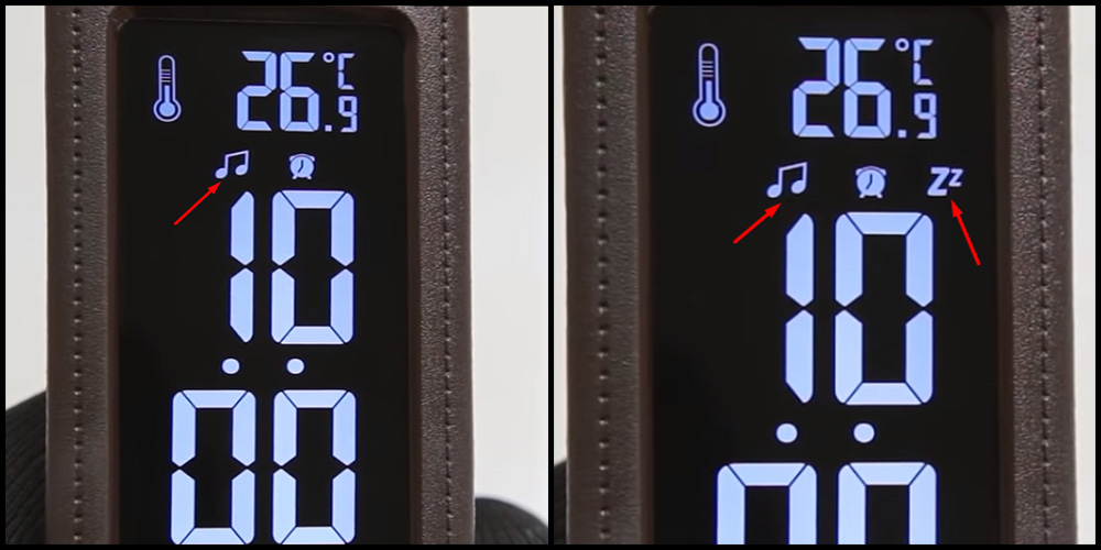 À l'aide des flèches, sélectionnez le mode sur la chaux, le mode sera activé une fois, l'icône «belezhka» apparaîtra à l'écran. Le mode répète la notification deux fois, l'icône "berezhka" et "Zz" n'apparaissent pas à l'écran.