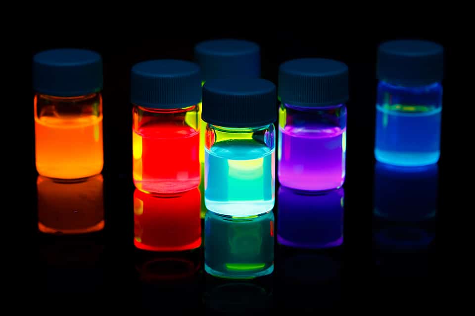 Ce fluorophore, qui brille dans le noir, utilise souvent des dérivés de la rhodamine, de la cyanine et de l'aminonaphtalimide. Mais en raison du prix élevé de ces substances, il s'agit de particules extrêmement petites du polymère, ce qui augmentera le coût en fonction du temps de production.