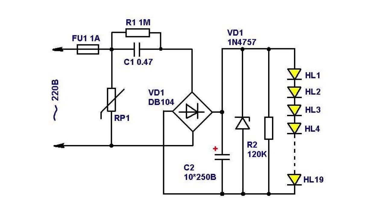 Installez les LED de câblage en série. Techniyat broy dépend de la tension de la source sur la protection et samite diodi. En parallèle avec la LED, une limitation de courant est montée. Le coût peut être calculé à l'aide d'un calculateur en ligne.