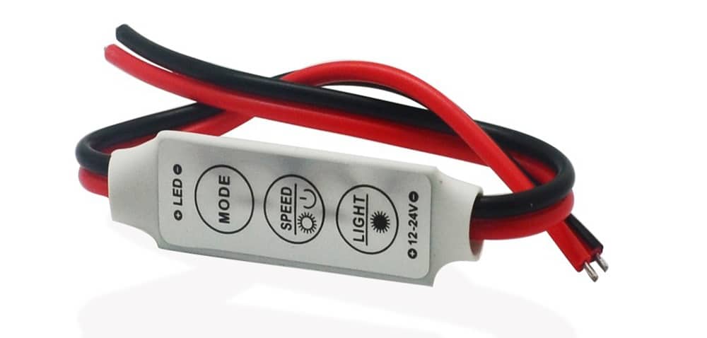 Pour le contrôle du travail sur un tel appareil, il utilise un dimère pour la bande LED, qui est inclus dans la protection de l'alimentation de la source lumineuse et peut contrôler le travail du mu d'une manière ou d'une autre dans le mode donné, et avec le l'aide de la télécommande.