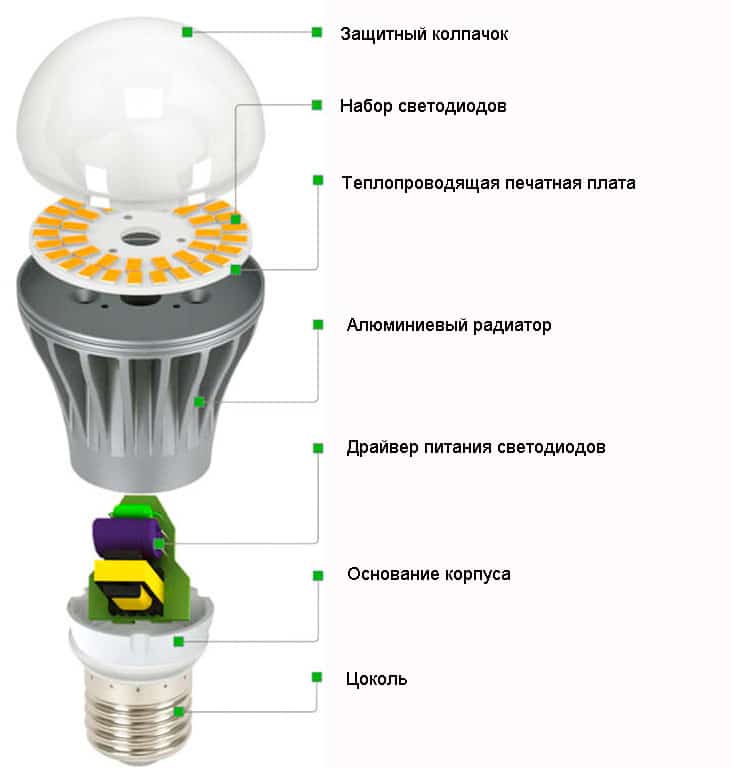 Diode, connectez en série, enregistrez le pilote - source de courant. Dans les appareils économiques, les LED de pression de courant ne sont pas stabilisées et dépendent directement des fluctuations de l'intertension. Lorsque vous achetez une lampe, un courant prés semi-conducteur, utilisez un stabilisateur sur un champ donné. La deuxième option, l'analyser, est beaucoup plus prometteuse de prviya, mais une telle lampe est un peu plus durable et la réparation est difficile.