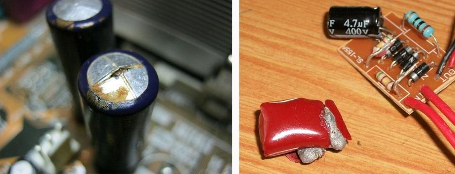 Sur le côté gauche de l'image, le condensateur a échoué électrolytiquement, c'est génial - il est durci