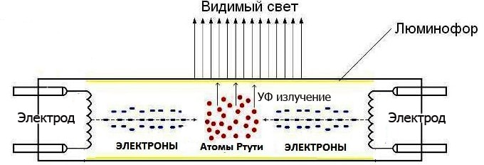 Pour oui, vous comprendrez pour une sorte de ballast, tryabva et comprendrez le principe de travail sur une lampe fluorescente (LL). Pensez au dispositif neuronal. Structurellement, chaque lampe fluorescente a un capuchon en verre sous le format du tube, dans les bords duquel les bobines réfractaires sont scellées avec un liquide chaud, qui est l'électrode. Kolbat e polna avec un gaz inerte avec peu d'ajout au métal zhivak. De l'extérieur, il est recouvert de phosphore - une substance capable d'émettre de la lumière visible lorsqu'elle est exposée à la lumière ultraviolette.