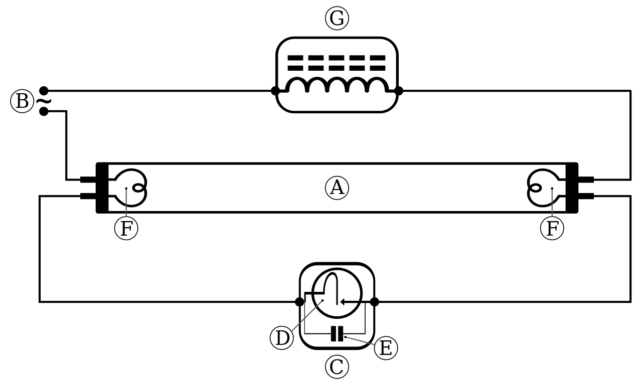 ficelle sur une lampe fluorescenteficelle sur une lampe fluorescenteSchéma typique d'une lampe fluorescente avec EMPRA