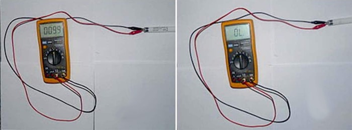 Le dispositif et le principe de l'action sur le ballast pour lampes fluorescentesLe dispositif et le principe de l'action sur le ballast pour lampes fluorescentesVérifier l'intégrité de la spirale sur la cathode LL avec multicet